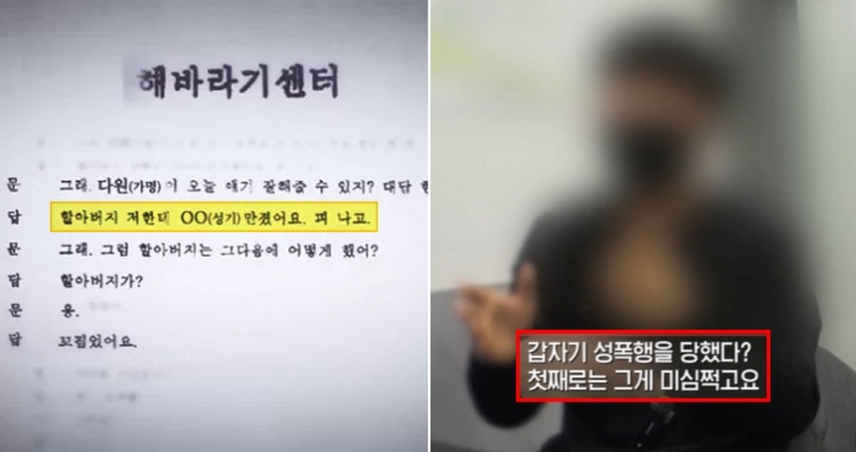 녹음본 속에는 할아버지의 성폭력을 주장하는 딸의 음성이 담겨 있었다. 또 딸은 여성가족부 산하 해바라기센터와의 상담에서도 "할아버지가 성기를 만졌다", "성기를 꼬집어 피가 났다"고 진술하기도 했다.