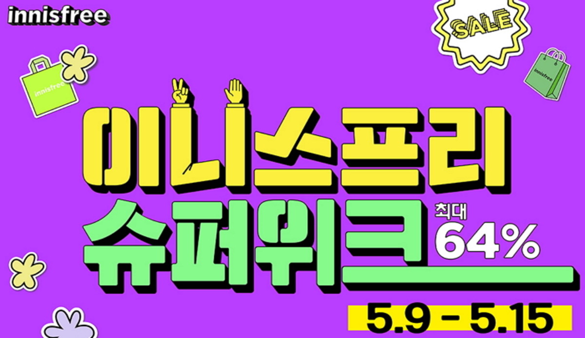 [인사이트] 김나영 기자 = 이니스프리가 5월 9일부터 15일까지 단, 7일 동안 풍성한 혜택을 가득 누릴 수 있는 '이니스프리 슈퍼 위크'를 실시한다고 밝혔다.