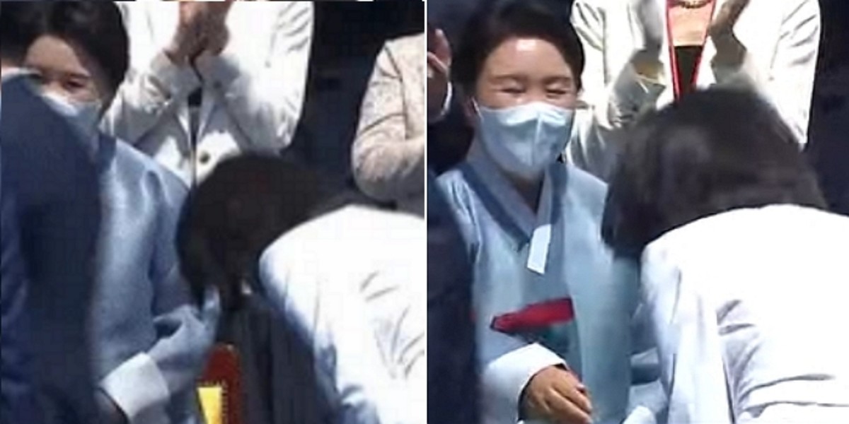 [인사이트] 김다솜 기자 = 대통령 취임식에 참석한 문재인 전 대통령과 김정숙 여사에게 김건희 여사가 '폴더 인사'하는 모습이 포착됐다.