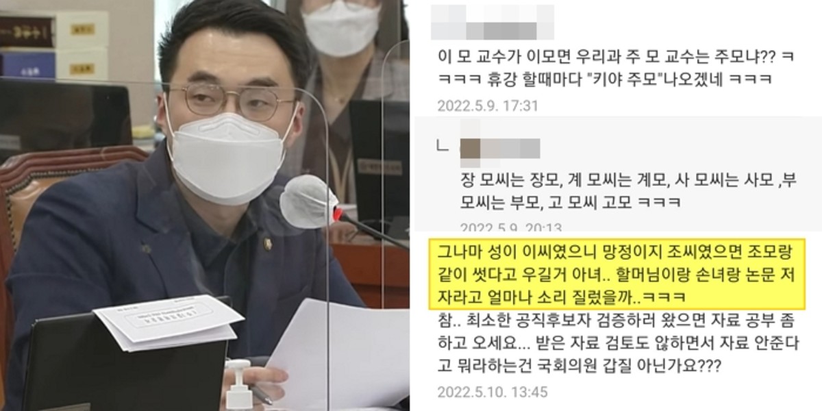 이는 김 의원이 교신저자로 적힌 '이모 교수'를 어머니의 자매를 일컫는 '이모'와 혼동해 벌어진 실수였다.