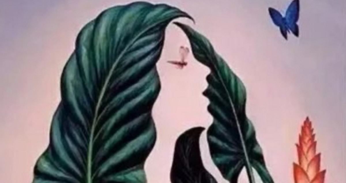 해당 그림에는 나뭇잎, 나비, 꽃과 함께 나뭇잎이 만들어낸 여성의 형체가 보인다.