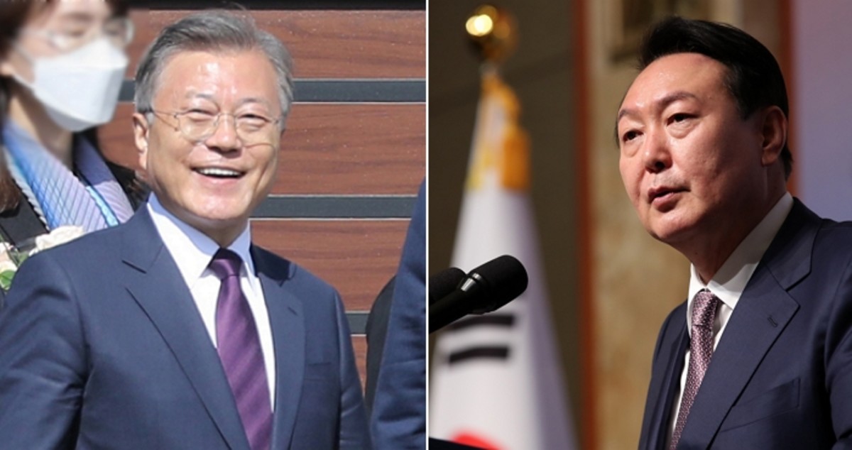 10일 제20대 대통령 취임식에서 악수하는 윤석열 대통령과 문재인 전 대통령 / 뉴스1