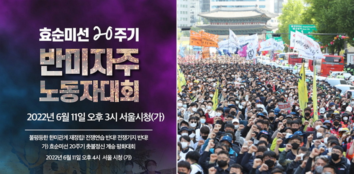 효순·미선 사망 20주기를 맞아 '반미자주 노동자대회'를 열겠다고 선언했다.
