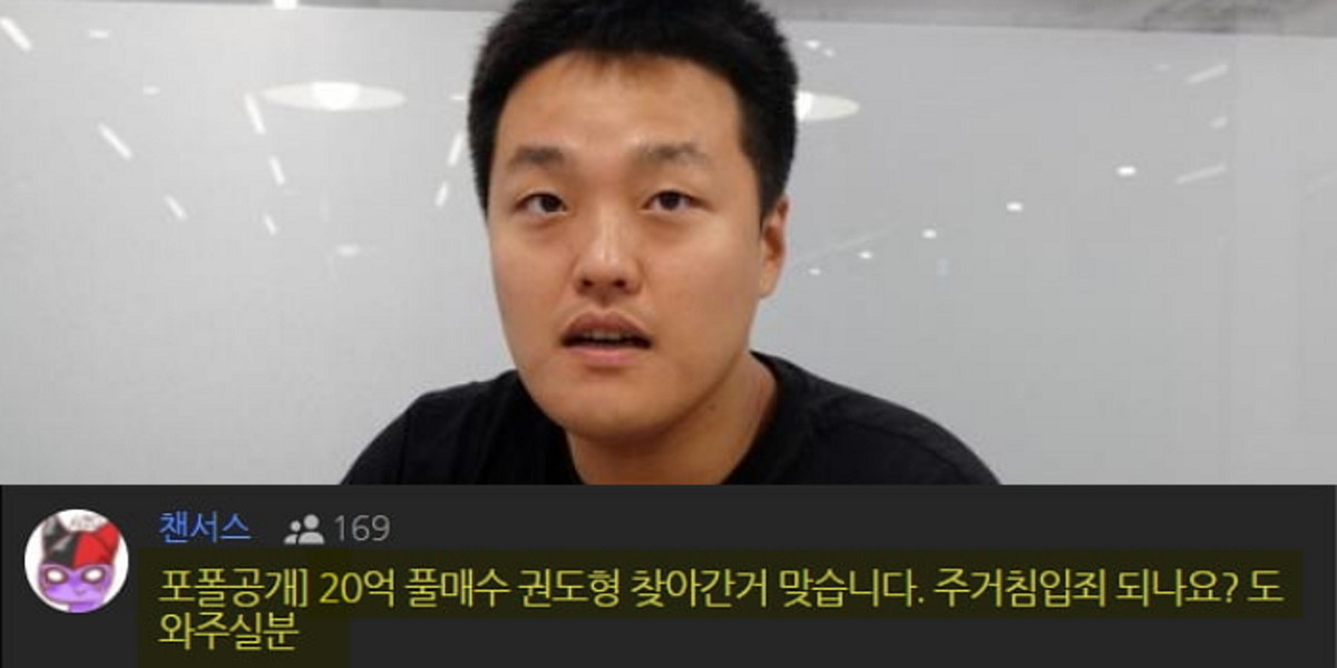 그는 방송에서 "루나에 20억원을 풀매수했다"라며 "권도형 집 찾아간 거 맞다"라고 말했다. 이어 주거침입죄가 적용될 수 있는지 물으며 도움을 요청했다.