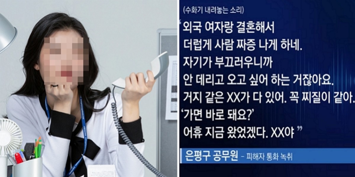 이후 해당 공무원은 전화가 끊어진 줄 알고 막말을 쏟아냈다. 그는 "외국인 여자랑 결혼해서 더럽게 사람 짜증나게 하네", "자기가 부끄러우니까 안 데리고 오고 싶어하는 거잖아요", "거지 같은 XX가 다 있어", "꼭 찌질이 같아" 등의 발언을 했다.