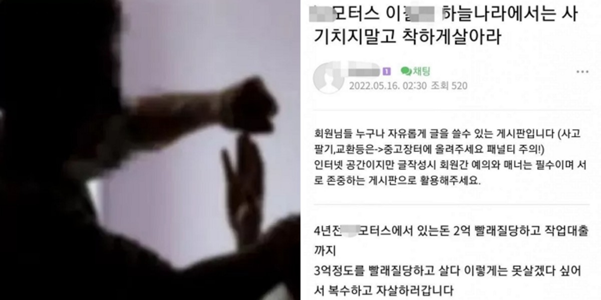 글쓴이는 "4년 전 매장에서 2억원과 3억원씩 사기를 당했다"면서 "이렇게는 못 살 것 같아 복수하고 극단적 선택을 하러 간다"고 적었다.