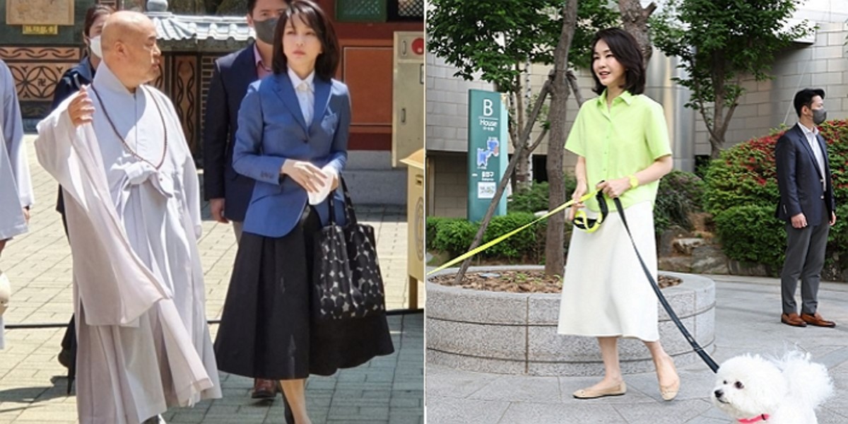 지난 3일 충북 단양 구인사를 방문했을 때 김 여사는 검은색 스커트를 착용했다. 특히 해당 제품은 지지자들 사이에서 5만 4천원의 제품인 것이 알려질 정도로 뜨거운 관심을 받았다.