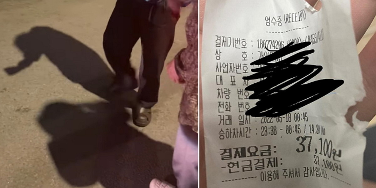 택시 영수증도 공개했다. 영수증에는 3만 7,100원이 찍혀 있었다.