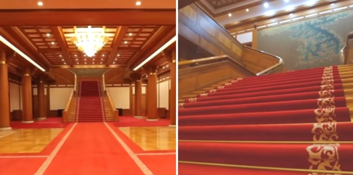 본관 문을 열고 들어서면 곧바로 넓은 홀이 나타난다. 정면 계단까지 이어진 붉은 카펫과 어우러진 금빛 도는 조명은 화려한 분위기를 자아낸다.