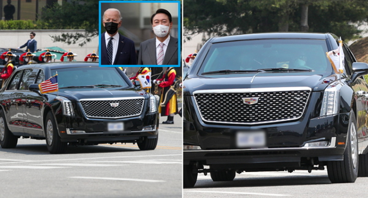 방한에 맞춰 군 수송기로 수송된 이 철판으로 둘러싸인 방탄차는 미국 제너럴모터스(GM) 캐딜락이 제조했다.