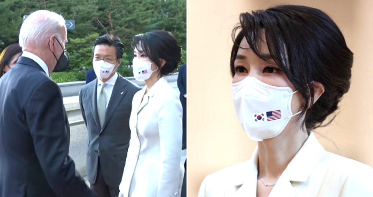 김 여사는 우아한 자태를 뽐냈다. 바이든 대통령과 인사를 나누며 미소 짓는 김 여사의 모습은 마스크를 하고 있음에도 빛이 났다.