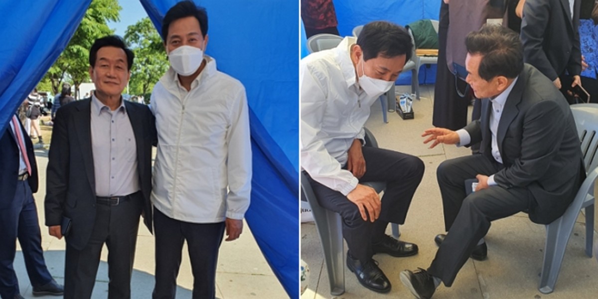 조 후보는 마침 월드컵공원 평화잔디 광장에서 선거유세 중이었는데, 이날 행사에 참석했던 오 후보와 만나 반갑게 인사하는 장면이 연출됐다.