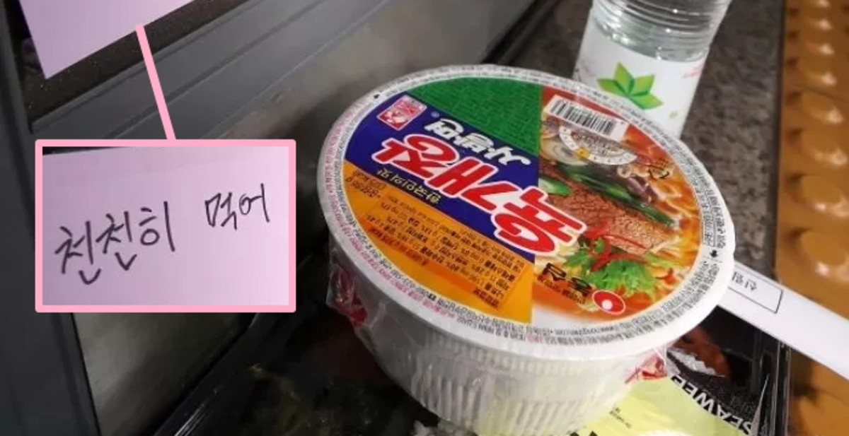 지하철역에는 사고로 세상을 떠난 김 군의 가방에 들어있던 먹지 못한 컵라면이 놓였다. 컵라면 옆에 붙은 작은 포스트잇에는 "천천히 먹어"란 걱정 어린 말이 쓰여 있다.