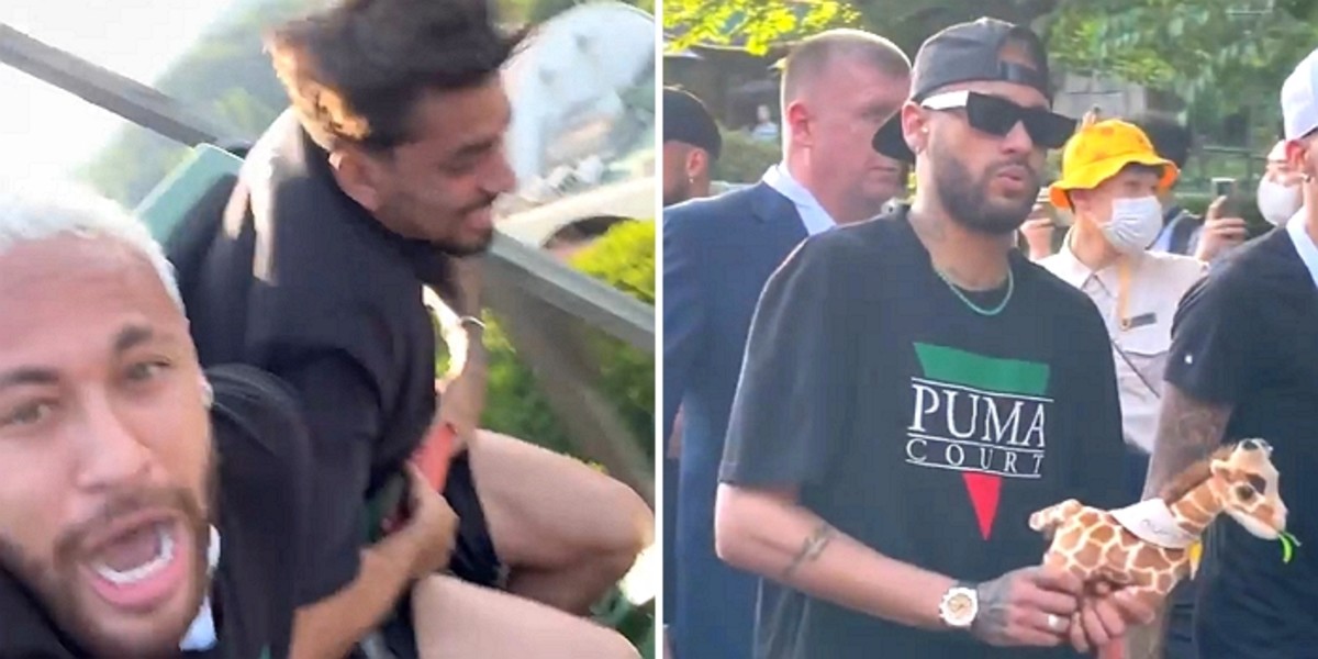 이날 네이마르는 기념품에서 산 듯 기린 인형을 손에 꼭 쥐고 돌아다니는 모습이 포착됐다.