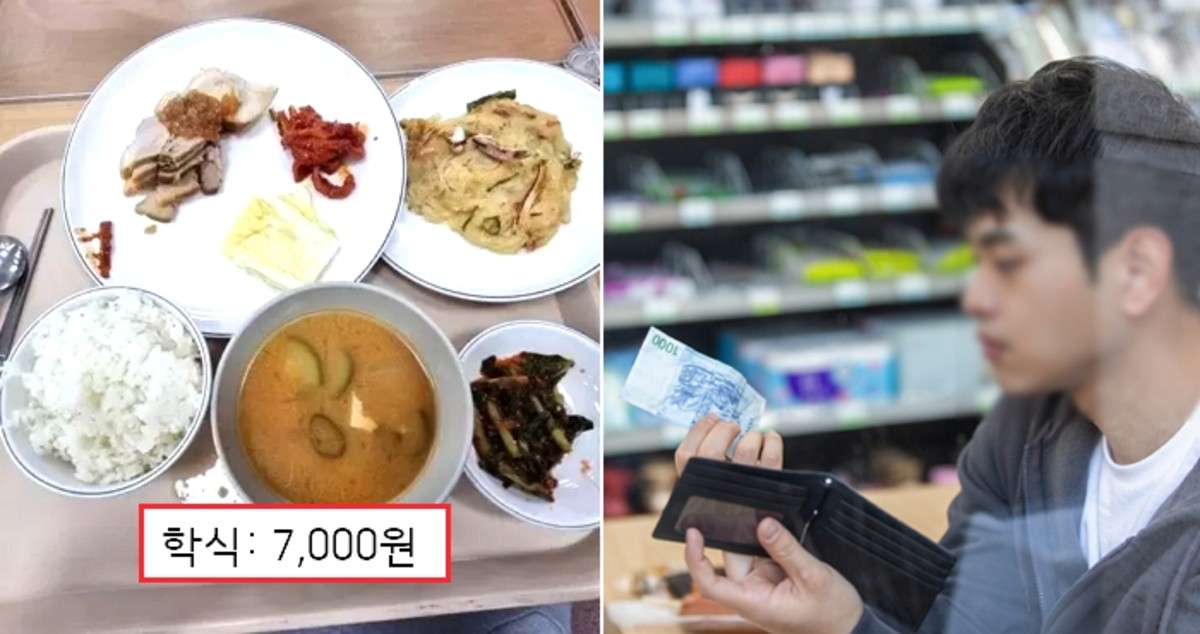 밥과 된장국, 김치, 해물파전, 약간의 보쌈으로 구성된 학식은 할인을 받아 7천 원이란 사실이 알려지며 많은 이들을 한숨짓게 했다.
