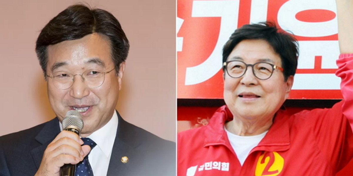 좌측이 국민의힘 송기윤 증평군수 후보 / 뉴스1