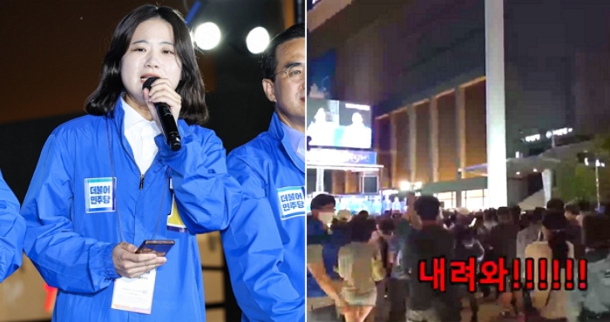 박 위원장이 유세를 하는 동안 더불어민주당 지지자들 중 일부는 "내려와라", "내려와 박지현"라고 크게 소리쳤다.