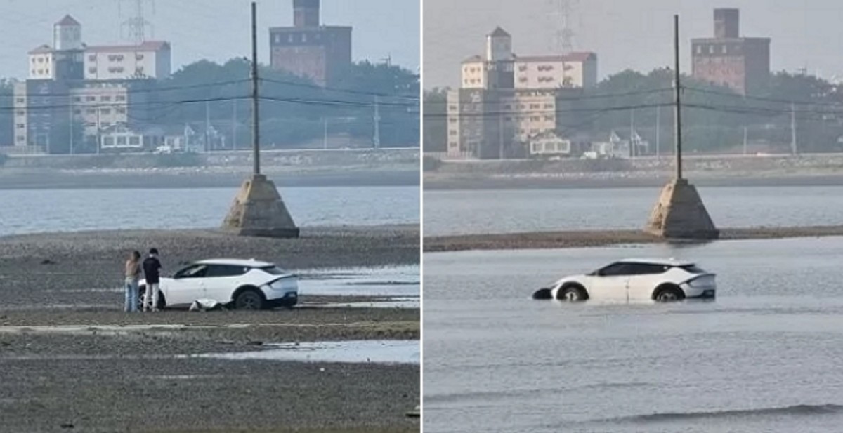 이날 20대 커플은 EV6를 몰고 길목에 진입했다가 갑작스레 갯벌 한복판에 빠져 차량 하부가 물에 잠기는 침수 사고를 겪게 됐다.