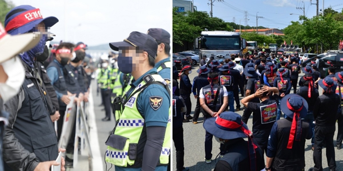 지난 8일에도 경찰은 이천 공장에서 출고하는 배송차량의 운행을 방해한 혐의로 노조원 15명을 체포했다.