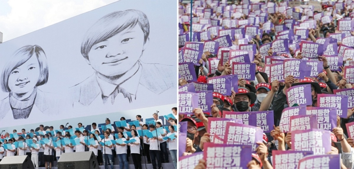 지난 11일 민주노총은 이날 오후 3시께 서울 중구 세종대로에서 효순·미선 20주기를 맞아 집회를 열었다.