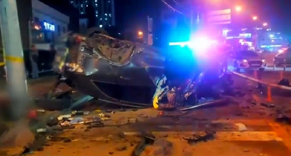 사고 충격으로 SUV 차량은 인도 쪽으로 전복되면서 주변 보행자를 덮쳤다.