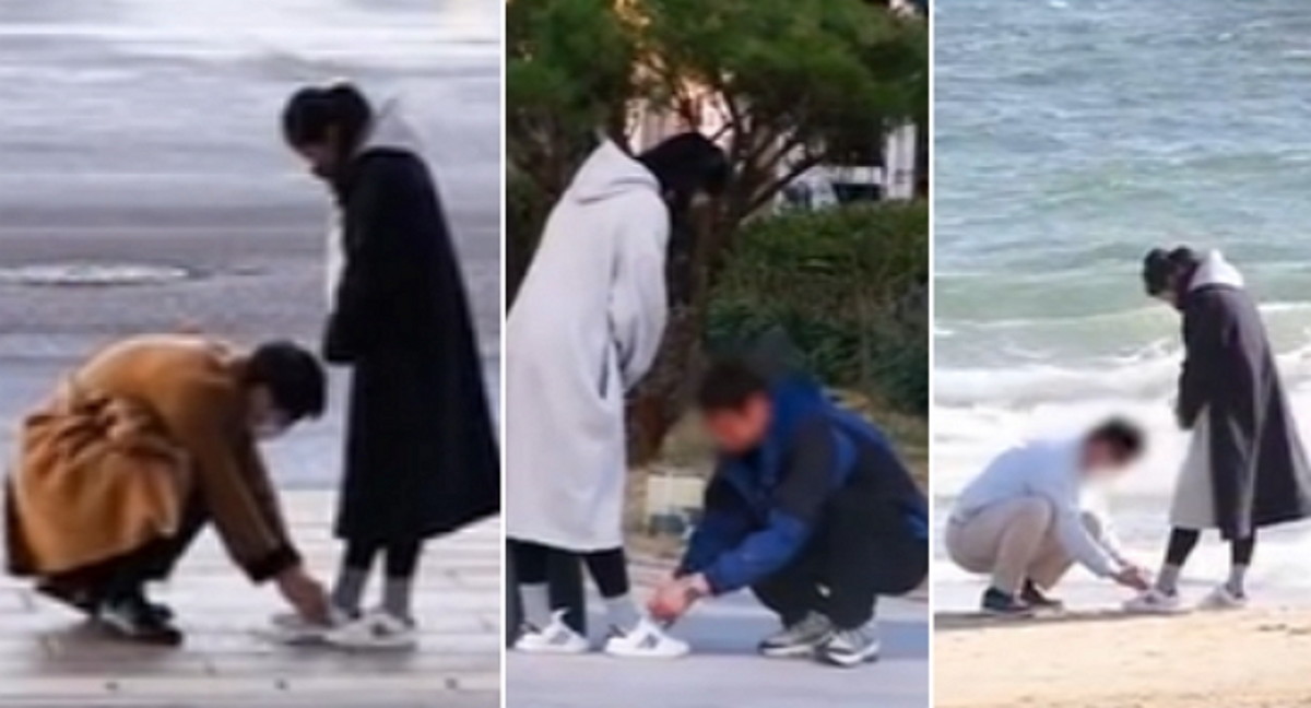 남성들은 "잠시만요", "도와드릴까요"라고 물으며 친절하게 신발 끈을 묶어줬다. 무릎이 더러워질 수도 있었지만 개의치 않고 허리를 숙였다.