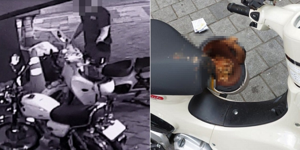 일면식도 없는 신원미상의 남성이 A씨의 오토바이 시트와 헬멧에 음식물 쓰레기를 잔뜩 버리고 도망간 것이다.