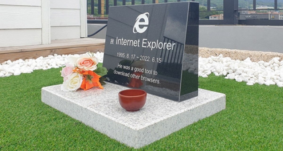 함께 공개된 사진을 보면 대리석으로 만들어진 묘지 대리석에 '고(故) Internet Explorer'이라고 적혀 있다.