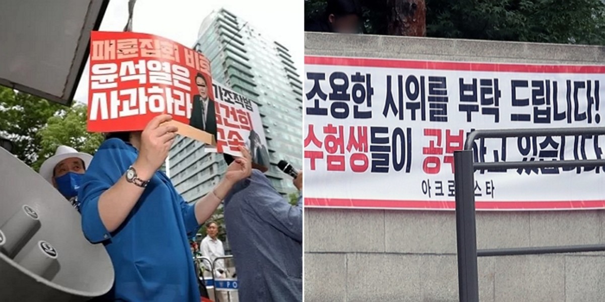 이 과정에서 소음이 이어지자 아크로비스타 주민들은 담장에 '조용한 시위를 부탁드립니다! 수험생들이 공부하고 있습니다', '집회 소음으로 아기가 잠을 못 자고 울고 있습니다' 등의 문구가 적힌 현수막을 내걸었다.
