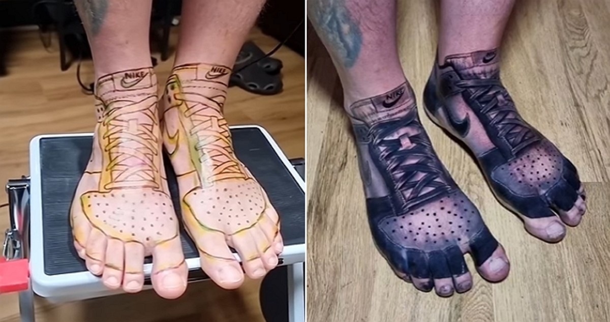 실제 공개된 영상에는 나이키 인기 모델 '덩크'를 구멍 하나하나까지 완벽하게 재현해낸 문신이 담겨 보는 이들을 놀라게 했다.