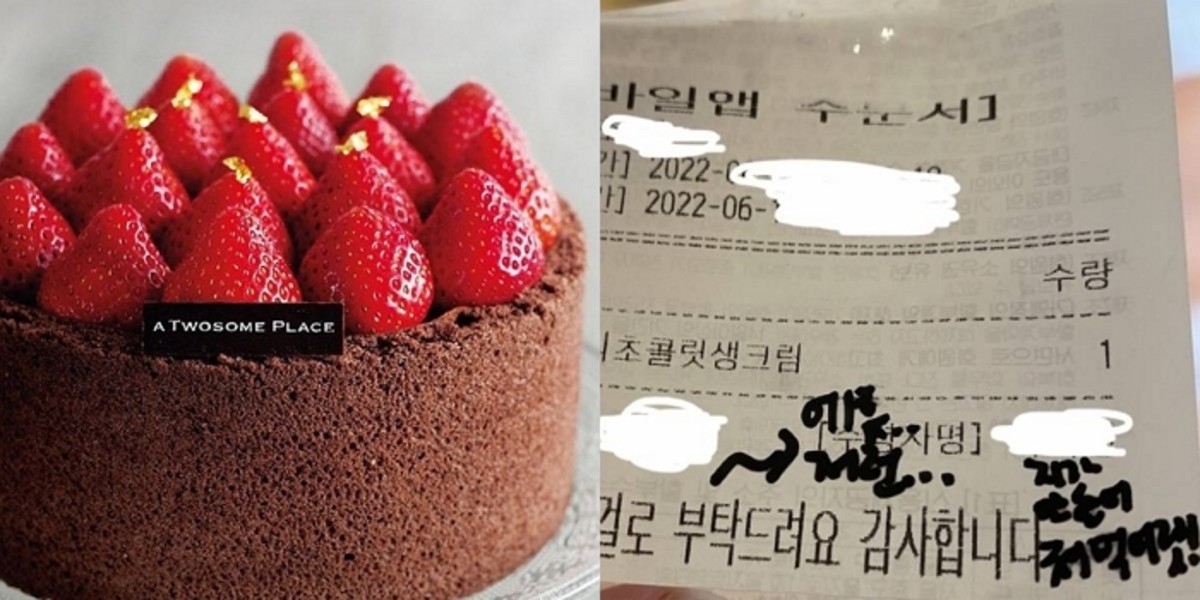 이후 A씨는 매장에 들러 케이크를 픽업했다. 집에 돌아와 케이크를 확인한 그는 동봉된 영수증을 보고 충격에 휩싸였다.