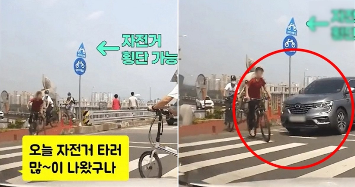 지난 2015년 금융감독원의 '자동차 사고 과실 비율 인정 기준'에 따르면 항해 8월 1일부터 자전거 횡단도를 주행하는 자전거와 자동차 간에 사고가 발생했을 때는 자동차 운전자에게 과실이 100% 적용된다.