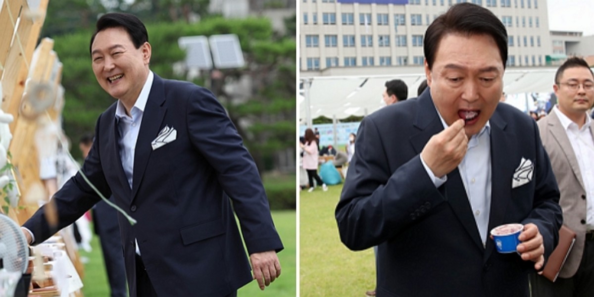 윤 대통령은 상인들의 부스를 돌며 인사를 나누고, 다양한 음식들도 시식했다.