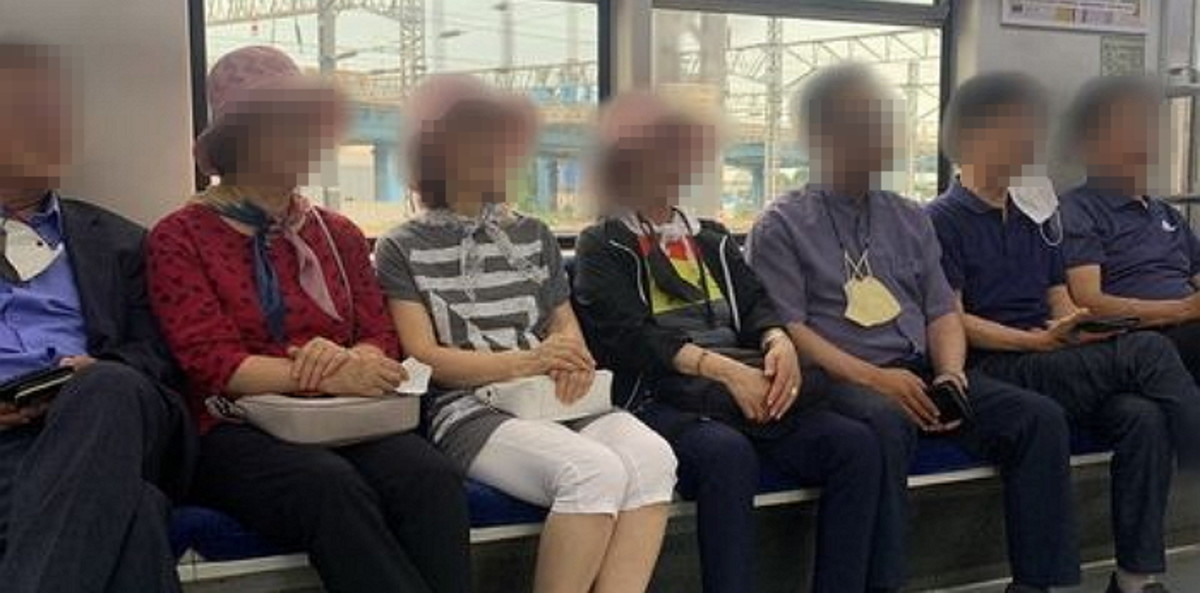지하철·버스 등은 실내로 구분되기 때문에 필히 마스크를 착용해야 한다. 하지만 50대~60대 추정되는 남성·여성들 무리가 지하철에서 이를 지키지 않는 모습을 보였다.