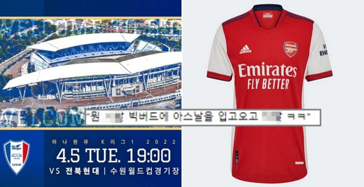 21일 한 온라인 커뮤니티에는 "나는 여친이랑 아스날 져지입고 빅버드(수원 삼성 경기장) 갔다가 쌍욕 먹어봄"이라는 제목으로 해당 사연이 게시됐다.
