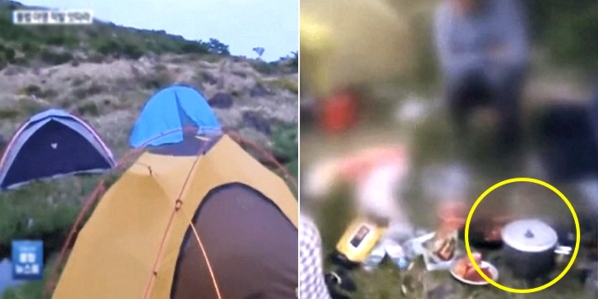 이들은 출입이 금지된 곳에 몰래 들어가 그늘막을 치고 음식을 먹고 있었다. 심지어 가스버너와 술까지 지참한 상태였다.