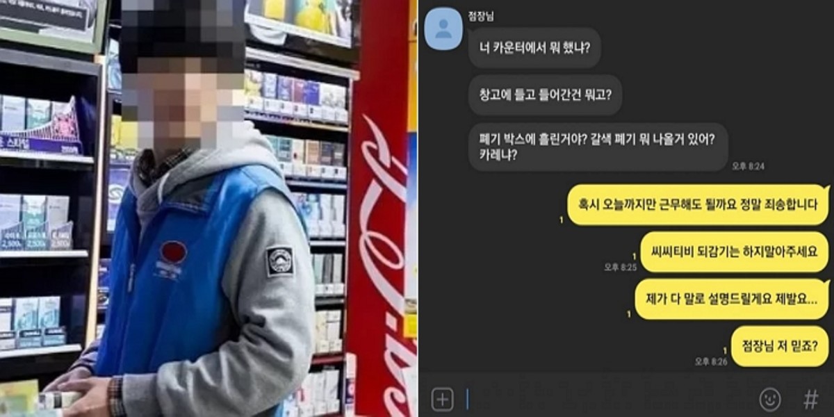 이에 A씨는 "오늘까지만 근무해도 되냐. 정말 죄송하다"면서 "CCTV 되감기는 하지 말아달라. 말로 다 설명드리겠다"고 부탁했다.
