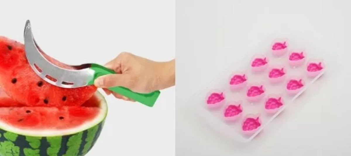 먼저, 여름 별미인 과일화채를 만들 수 있는 과일 커팅 도구와 아이스 트레이 등을 준비했다. '손잡이 코팅 수박 커터기'는 수박을 한입 크기로 자를 수 있도록 집게형 커터기로 디자인됐으며 누구나 손쉽게 사용할 수 있다.