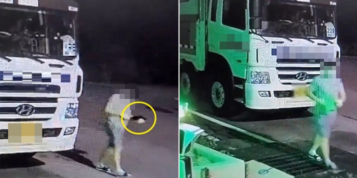 남성은 트럭 주변을 돌면서 두리번거렸다. 이후 범행 현장을 유유히 떠난다.