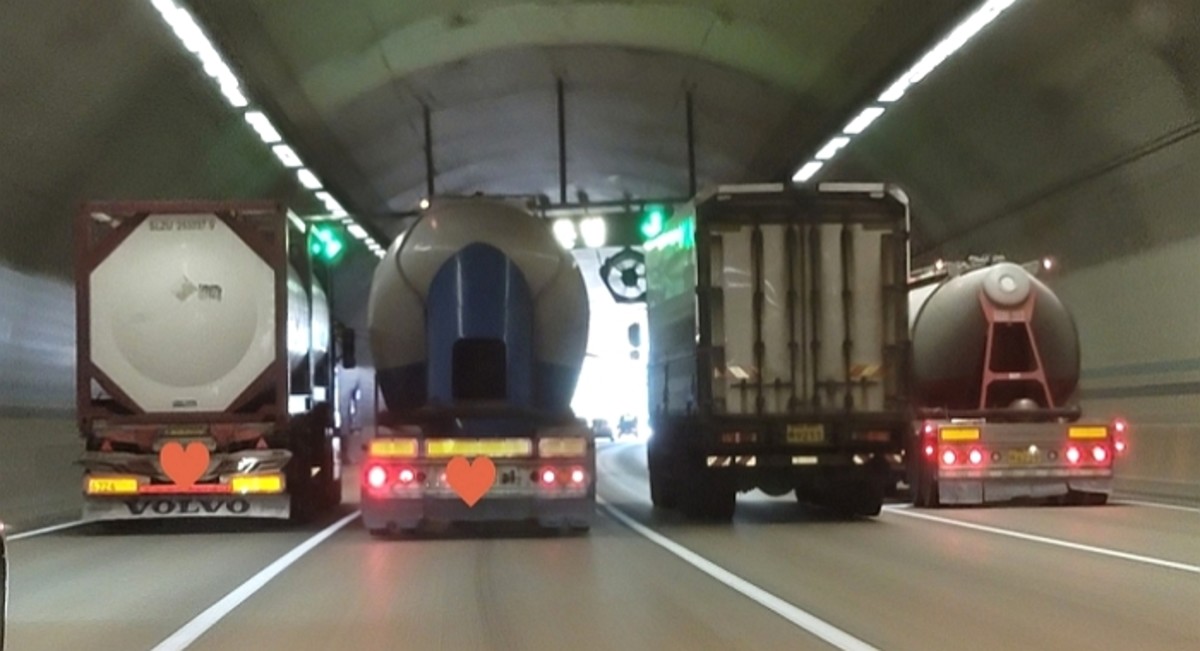 4대의 화물차는 모두 상당한 크기를 자랑했으며 뒤에서 달리는 차들은 쉽게 앞이 보이지도 않는 수준이었다.