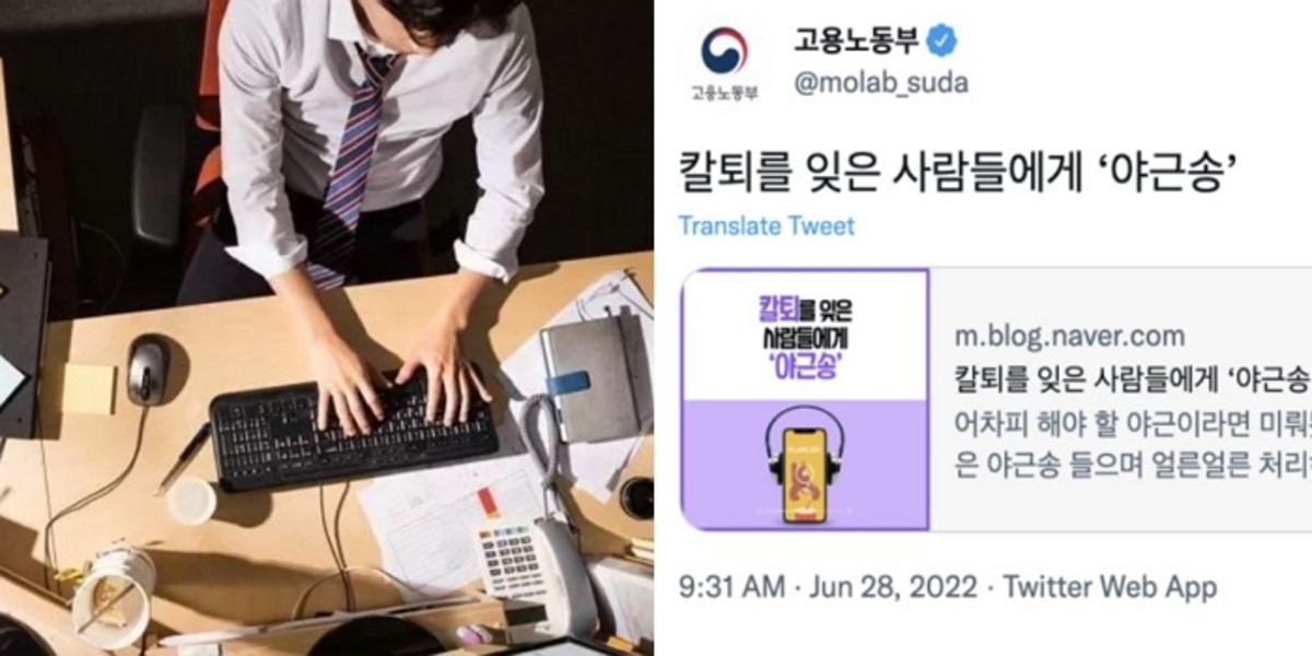 [인사이트] 유진선 기자 = 고용노동부가 공식 SNS를 통해 '야근송'을 소개하는 글을 올렸다가 여론의 뭇매를 맞고 삭제했다.