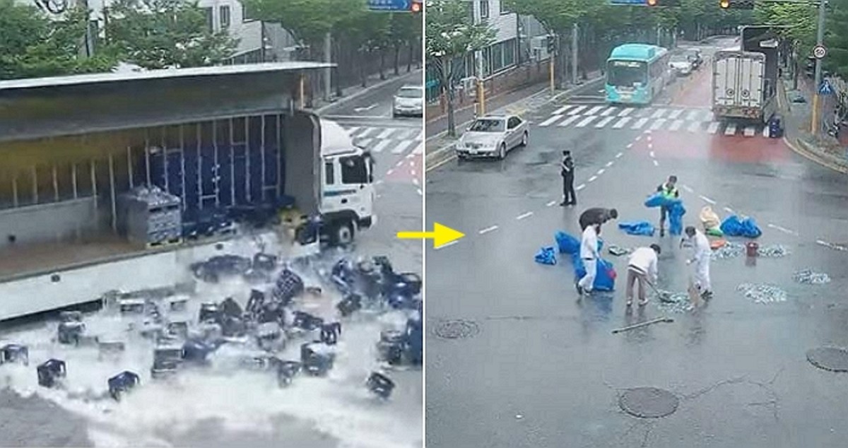 [인사이트] 김나영 기자 = 길을 걷다 5톤 트럭에서 쏟아진 맥주병 2천 개를 본 시민들이 모두 발벗고 나서 위험한 상황을 재빨리 마무리 지었다.