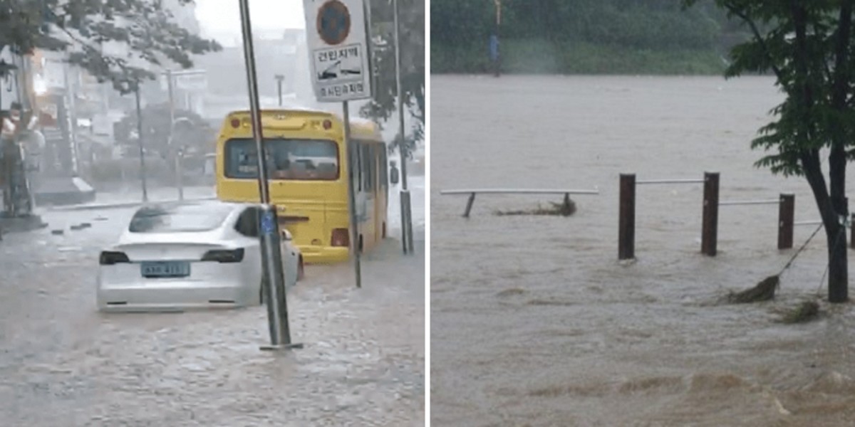 30일 오전 다수 온라인 커뮤니티와 SNS에는 오늘자 분당의 근황을 알리는 제목의 글이 다수 게재됐다. 서현역 인근은 쏟아지는 비로 차도에 바퀴가 반쯤 잠길 만큼 빗물이 차올랐다.