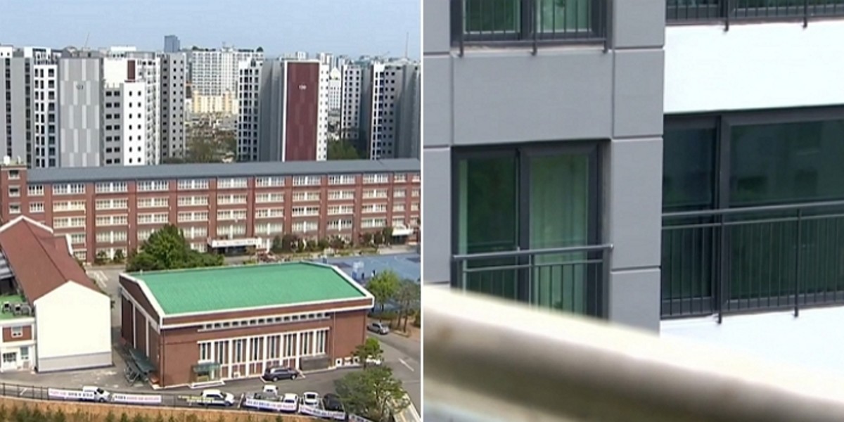 보도에 따르면 학생들은 학교와 아파트 사이가 불과 10m 남짓 떨어져 불편을 겪고 있다.