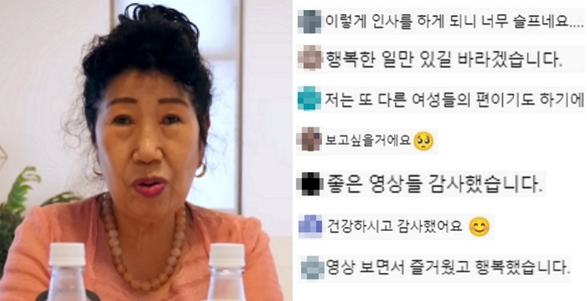 이들은 지난 24일 올라온 박막례 할머니의 영상에 들어가 "새로운 것에 도전하시는 할머니 보면서 저희 엄마도 많이 위로받으셨다. 마지막 인사를 드린다", "그동안 영상으로 많이 웃고 감동받아 즐거웠다", "할머님을 좋아하고 응원하는 마음이 큰데 이렇게 인사를 드려 너무 슬프다" 등의 글을 남겼다.