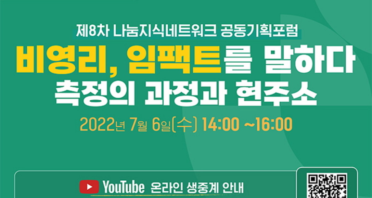 '비영리, 임팩트를 말하다. 측정의 과정과 현주소'를 주제로 열리는 이번 포럼은 비영리 기관에서의 임팩트 측정과 방법에 대해 논의하고 공유하는 자리로 마련됐다.