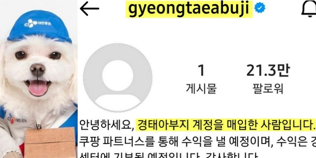 활성화 된 계정 소개란에는 "경태아부지 계정을 매입한 사람이다. 이 계정으로 쿠팡 파트너스 수익을 낼 예정이다. 수익은 강아지 보호센터에 기부할 것"이라고 적혀 있었다.