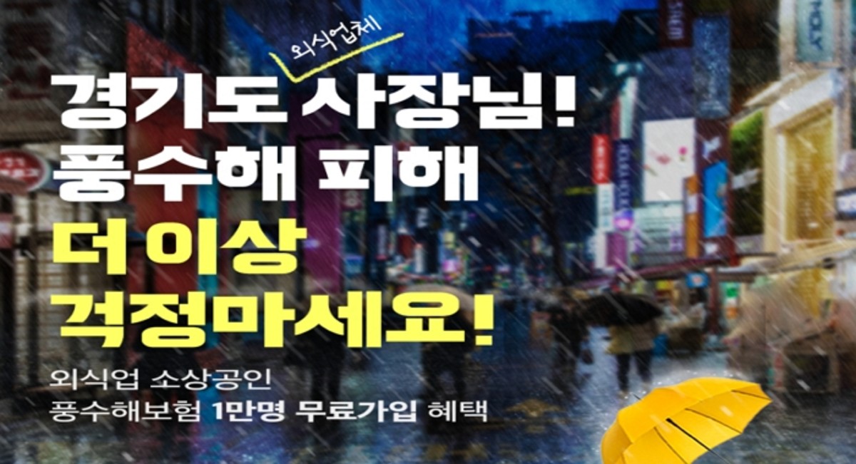 이번 경기 지역 외식업 사장님대상 풍수해보험은 최대 1만 명까지 지원한다. 간단한 서류를 제출하면 보험료 부담 없이 가입할 수 있다. 보상한도는 5천만 원이며, 피해 발생시 자부담금은 20만원 수준으로 저렴하다. 수도권에 외식업 매장이 몰려 있는 만큼 많은 사장님들이 보험에 가입할 것으로 기대된다.