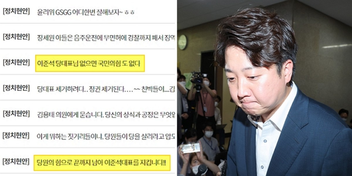 이 대표의 지지층인 20·30대 당원으로 추정되는 이들은 윤리위의 징계 결정을 비판하는 내용의 글을 작성했다.