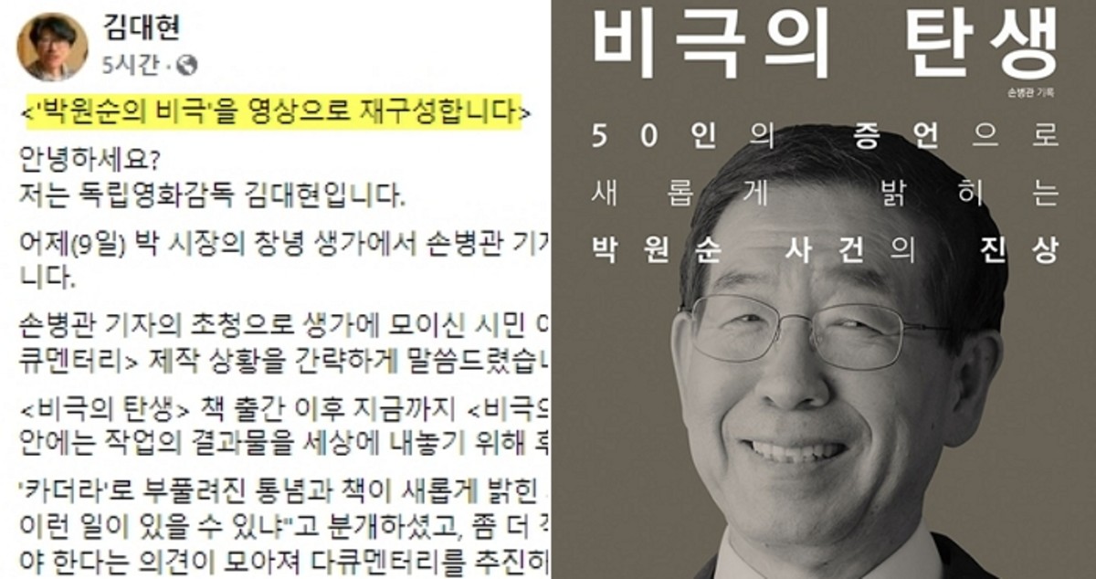 지난 10일 김대현 영화감독은 자신의 페이스북에 '박원순의 비극을 영상으로 재구성합니다'라는 제목의 글을 게재했다.